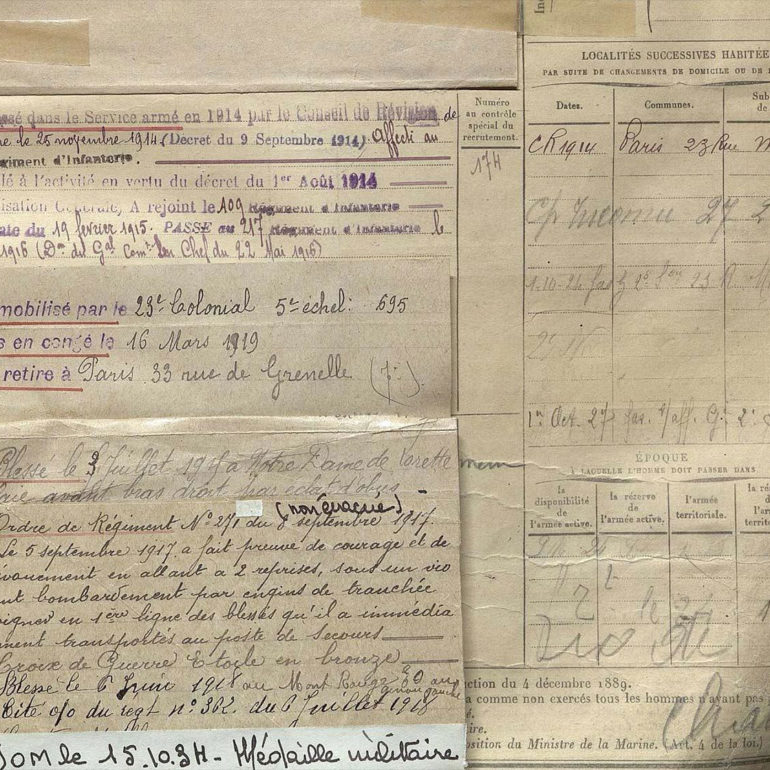 Avril 2018. Ce que je sais à ce jour, c’est peu. J’en connais à ce moment davantage sur René qu’à propos de Bertrand. Du fait de sa mort, René est référencé dans les archives militaires. Sur sa fiche de décès, j’ai pu connaitre son régiment. Pour Bertrand, aucune traces de ce côté à ma connaissance.